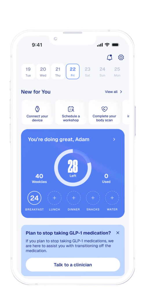 Comprehensive clinical weight management with obesity-trained clinicians to deliver quality care and provide access to GLP-1 medications.5